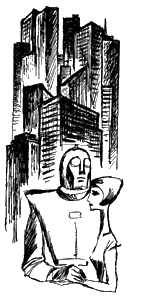 Из холла административного корпуса медленно вышла фигура с квадратными плечами. Придерживаясь за выщербленные гранитные перила, она опустилась вниз и, покачивая на ходу головной антенной, двинулась к выходу.