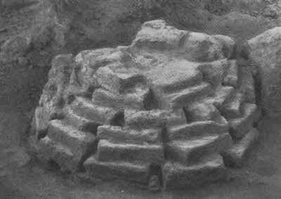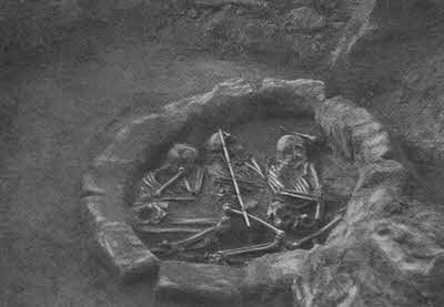 В таких оригинальных сооружениях (верхнее фото) геоксюрцы хоронили своих покойников. Когда один из толосов (так называются эти могильники) вскрыли, то обнаружили в нем три скелета, лежащие в одинаковом положении, согласно похоронному ритуалу геоксюрцев