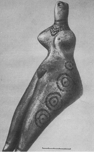 Эта великолепная статуэтка из обожженной глины изображает богиню плодородия. На бедрах богини изображения 18 солнц. Что это: украшение или календарь геоксюрцев?