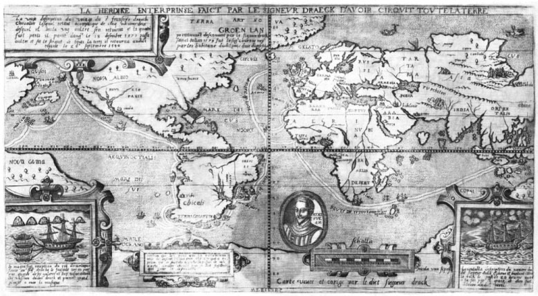 Карта с портретом сэра Фрэнсиса Дрейка, 1581 г.
