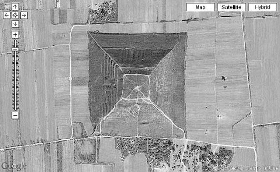 А вот китайская пирамида. Вид из космоса. Таких пирамид в Китае более ста, причем некоторые из них выше пирамиды Хеопса! Но о них практически никто не знает, поскольку район, где они находятся, закрыт для иностранцев. Раскопки этих пирамид практически не проводились, да и открыты Западным миром они были в середине ХХ века совершенно случайно – во время аэрофотосъемки. Китай хранит свои тайны…
