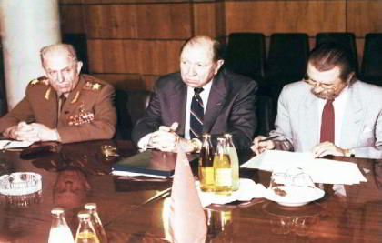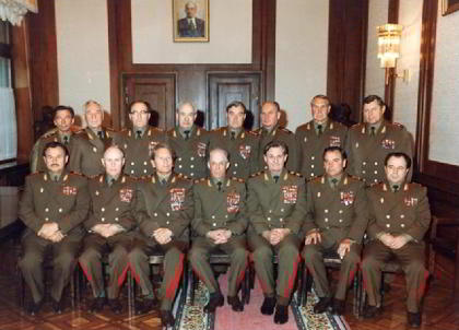 В кабинете начальника Генштаба, 1988 г. В центре – Начальник Генштаба С. Ф. Ахромеев, его заместитель Б. Омеличев – в первом ряду, крайний справа