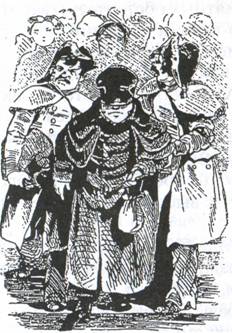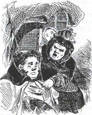 Купец на гулянье с семьею тих, как рыба, и кроток, как мокрая курица; покупает детям апельсины, грецкие орехи и вяземские пряники, наконец, покушают еще в последний раз и едут домой. Если купец провел весело время и погулял, то он приказывает кучеру к коляске приткнуть березки и дорогою вместе с супругою попевает песенки, а если за городом не было большой интермедии {8} , то возвращается домой, хоть и с березками, но без песен.