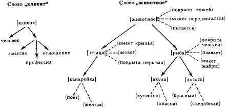 Из этих схем видно, какое огромное число свойств скрывается за, казалось бы, такими простыми словами, как «животное», «клиент» и т. п.