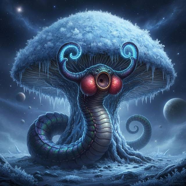 Прекрасное контральто ласкало слух, несмотря на то, что доносилось из пасти кошмарной твари. И ей вторил целый хор таких же тварей, сидящих на кривых, оледенелых древогрибах, что повсюду росли в мире Эрхи:
