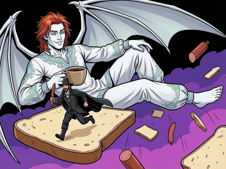 Когтистая ручища сцапала волшебника, который каким-то образом оказался меж двух кусков хлеба. Он понял, что уже не человек, что теперь он ломтик колбасы, который сейчас исчезнет в пасти чудовища…