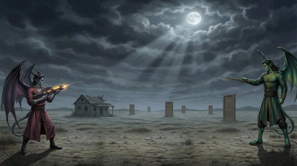 Этот этаж был ночным. Небо скрывалось за тучами, светила полная луна, а на серой равнине не было ничего, кроме ветхой хибары. Вероятно, в ней скрывается какая-нибудь тварь, головоломка или испытание. Там же и двери на другой этаж.