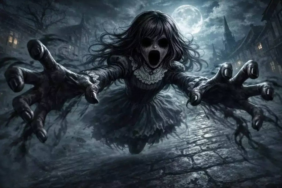 Лет десяти на вид, в черном платье, с черными волосами… ужасно похожая на Тьянгерию, только вымазанную сажей. Вместо глаз и рта черные провалы. Она тянула к Ао руки с черными пальцами… но, конечно, дотянуться снизу не могла.