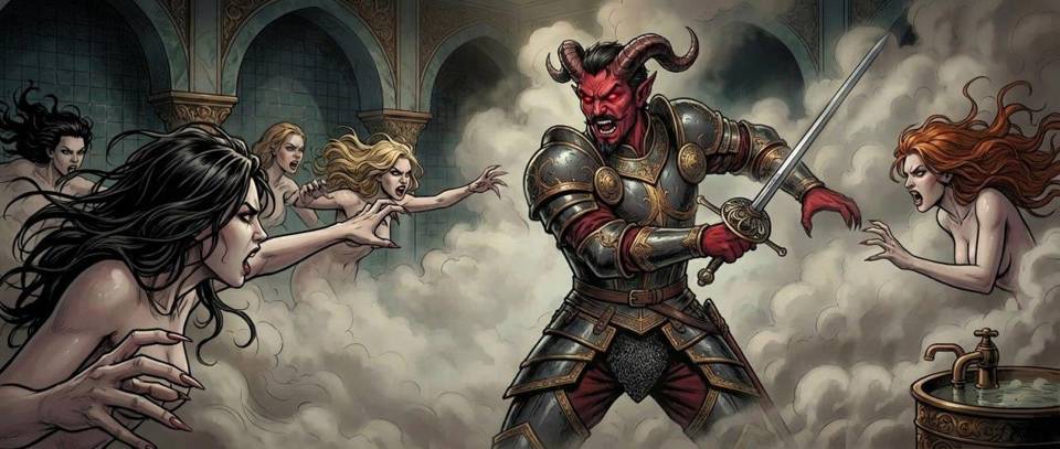 Самоталер прыгнули все разом. Шесть томных банщиц мгновенно превратились в бешеных фурий. Каждая из них была ничем перед гохерримом, перед его клинком – но их было шесть… а сзади набросились другие!