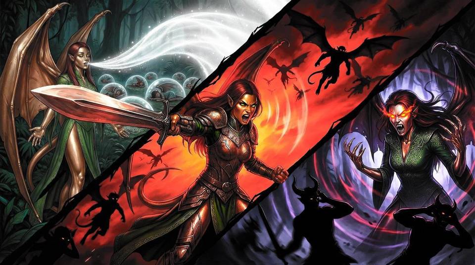 Хашдаробран вздрогнул. Истошный крик раздался до того, как опустился меч. До того, как врезался в плоть… и словно увяз в сыром, липком тесте! Воздух сгустился, уши заложило, а глаза из алых стали черными. Хашдаробран перестал видеть что-либо, кроме вопящей фархерримки, перестал слышать что-либо, кроме ее визга. Барабанные перепонки лопнули, а из ушей хлестала кровь – но вопль демоницы словно звучал внутри его головы.