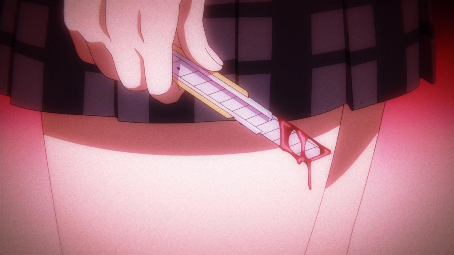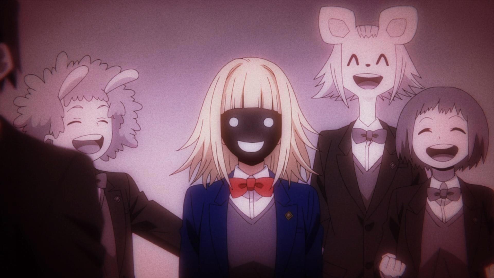 Та самая метафорическая «маска», о которой идет речь в конце главы, и сама девушка-яндера – среди шумных и чем-то там (выпускным!) возбужденных одноклассников.