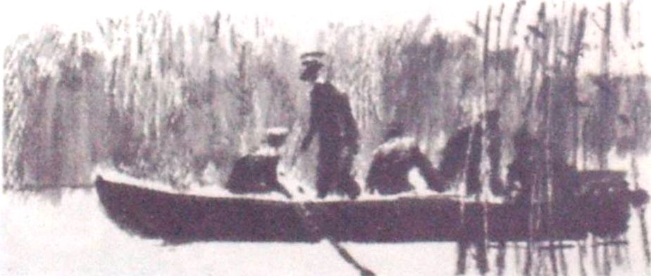 Пройдя еще немного, гребцы сложили весла и торопливо стали разбирать и «сыпать» в воду сети. Утлая, с плоским дном и тонкими бортами лодка колыхалась под дюжими ногами работавших; сети, скользя по мокрому борту, слегка плескались в воде. Когда их спустили, те, что держали веревку, уже чувствовали, как что-то там, в глубине, стукалось и толкало сеть, и веревка судорожно дергалась в руке. От этого у державших торопливо стучало сердце и слегка дрожали руки. Недаром эти люди с таким напряжением, переводя дыхание, озираясь в чернильной тьме, пробирались по камышовым зарослям водной пустыни. Одна ночь могла обеспечить им жизнь, жизнь самую веселую, приятную, счастливую на недели, на месяцы.