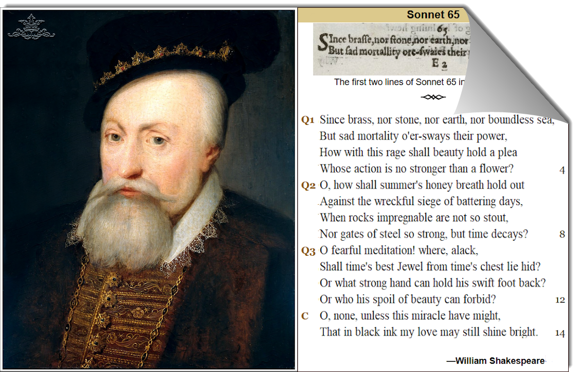 William Shakespeare Sonnet 65: «Since brass, nor stone, nor earth, nor boundless sea»
