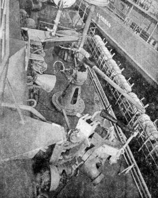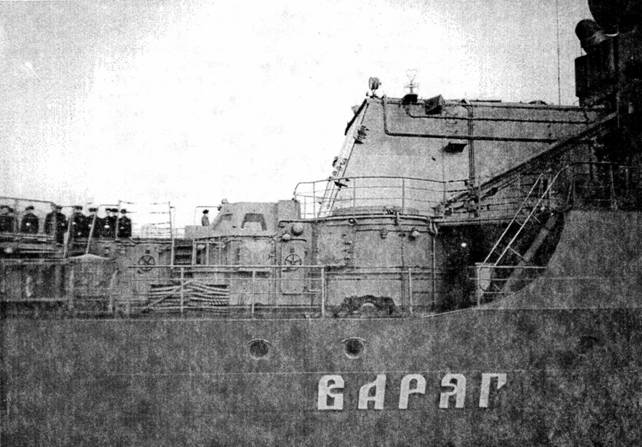 Если можно так сказать, для завоевания превосходства в воздухе служит уникальный зенитный ракетный комплекс коллективной обороны "Форт", который обеспечивает зону, свободную от действий авиации противника, радиусом до 90 км. Время реакции комплекса в режиме дежурства от 16 до 19 секунд, многоканальная вращающаяся антенна РЛС типа "фазированная решетка" обеспечивает одновременное сопровождение 6 целей и наведение на них по две ракеты. Вертикальный динамический старт (с интервалом в 3 секунды) делает запуск безопасным, так как исключается воздействие пламени на надстройки корабля, а агрегат с дефектом так или иначе не остается з погребе. Комплекс отработанный и надежный, однако неприятности бывают и здесь-так, летом 1990 года, во время испытаний "Червоной Украины" под Севастополем, стрельба была неудачной ракета сошла с траектории. "Форт" (аналог широко известного сухопутного С-300) предназначен для уничтожения высокоскоростных, маневренных и малоразмерных целей во всем диапазоне высот, до сверхмалых (то есть, может служить и как противоракетный комплекс самообороны), а также морских целей средних размеров. Корабли этого типа имеют на борту общий боезапас 64 ракеты в 8 барабанах. В состав пусковой установки Б-204 входят также загрузочные устройства, устанавливающие транспортно-пусковые контейнеры с ракетами с палубы корабля в погреб/На направляющие барабанов. Операция эта почти полностью механизирована, что ускоряет и облегчает погрузку боезапаса ЗУР. Между прочим, ракеты "Форт" могут храниться в ТПК в течение 10 лет без проверок и регулировок.