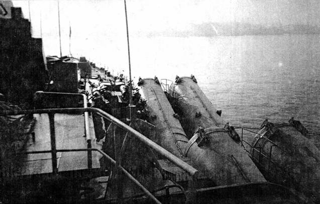 Основное противолодочное вооружение два пятитрубных поворотных торпедных аппарата калибром 533 мм. Стрельба производится через бортовые лацпорты. Противолодочные торпеды типа СЭТ-65 имеют скорость до 40 узлов, дальность хода до 16 км, вес БЧ 205 кг и активную систему самонаведения. Может быть применен комплекс самоходных гидроакустических имитаторов, которые также запускаются из торпедного аппарата. Имеется возможность стрельбы противолодочным ракето торпедным комплексом "Водопад-НК". Ракета выстреливается, как обычная торпеда, входит в воду, там у нее включается двигатель, после прохождения подводной траектории (около 300 м) она вылетает на поверхность, на заданной дистанции от нее отделяется торпеда и производит поиск обьекта для поражения. Дальность стрельбы "Водопада" до 50 км, может применяться в тех случаях, когда имеется надежное целеуказание на таких расстояниях (от вертолета или других противолодочных кораблей).
