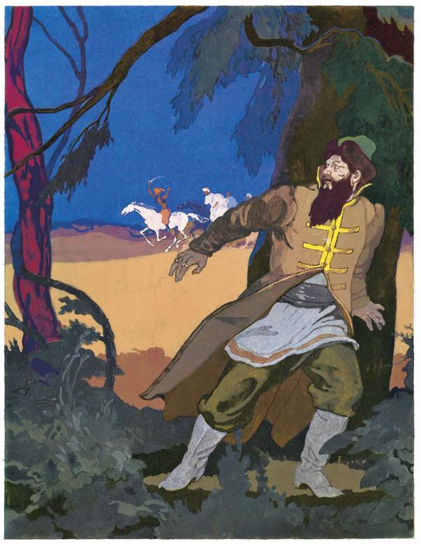 Поворотил он назад – нельзя идти, направо, налево – нельзя идти; сунулся вперёд – дорога торная. «Дай постою на одном месте, может, зарево пойдёт в другую сторону, аль прочь от меня, аль потухнет совсем».