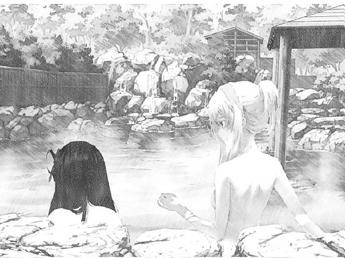 Ловко забираясь по веткам и избегая постороннего внимания, потомок знаменитых мастеров охотился за прекрасными видами, которые можно навсегда запечатлеть в своем сердце. Заботливо сколоченный настил не издал не единого скрипа, принимая на себя вес и юноша впился взором в окутанный паром водоем, огороженный высоким забором.