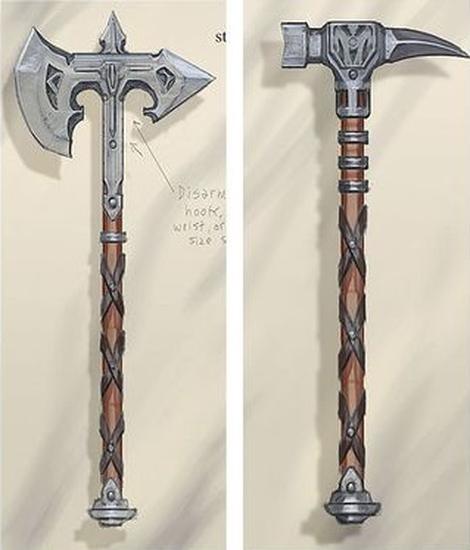 Я трудился в кузнице день и ночь. Но ничего кроме краснухи произвести не получалось. На третий день я, наконец, достиг первого уровня оружейника, и к доступному ассортименту добавилась одноручная и двуручный боевая секира и боевой молот. Имелась разновидность молота с колющей стороной. Секиры тоже имели несколько вариантов, обоюдоострые или с дробящей или колющей частью. Урон высчитывался в зависимости от того, какой стороной оружия производилась атака.
