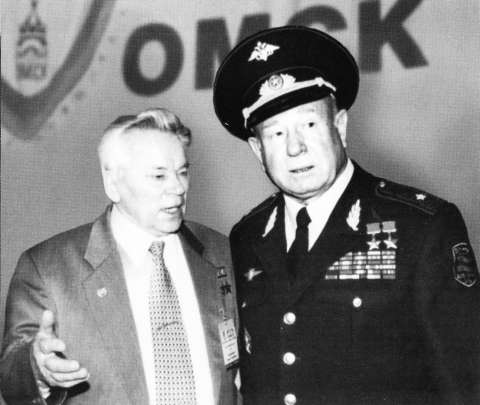 На выставке вооружения и военной техники с космонавтом Алексеем Леоновым. Омск, 2001 г.