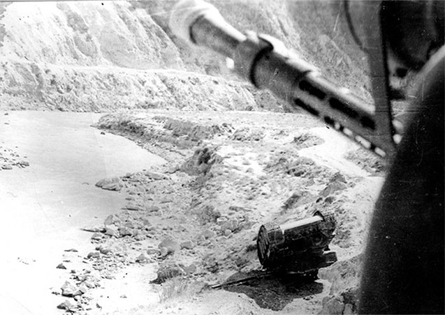 Разведчики спускают с откосов уже отстрелявшие свое стволы. Под вершиной на склоне обнаружена пещера. Внутри склада сотни цинков с патронами, десятки реактивных снарядов, противотанковые мины итальянского производства. Корпус противотанкового фугаса изготовлен из желтого пластика, это затрудняет их поиск индукционным миноискателем. Для обнаружения саперы используют минно-разыскных собак, обоняние «вестов» спасло жизни и здоровье сотням бойцов.