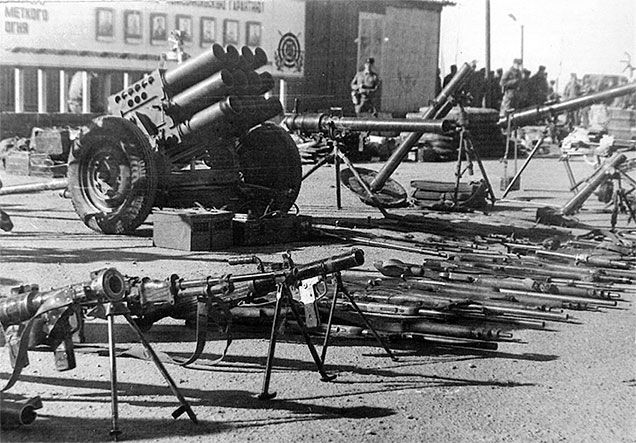 [Закрыть] с большим круглым дисковым магазином на семьдесят один патрон. Изготовленные из штампованных деталей легкие пистолеты-пулеметы Судаева. Снопы различных модификаций винтовок «Ли Энфилд», по-нашему «бур». Автоматы Калашникова египетского производства. Несколько крупнокалиберных пулеметов, зенитные горные установки. Трубы безоткатных орудий различных модификаций.