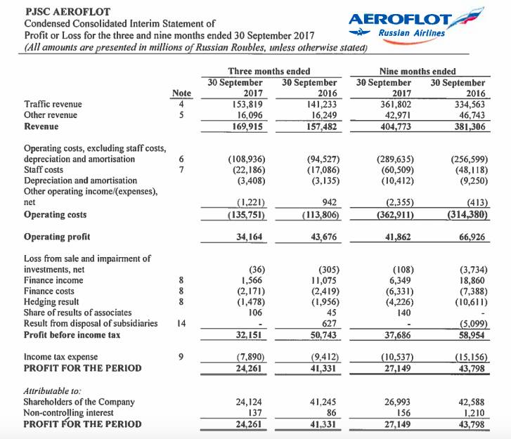 Пример презентации операционной прибыли в финансовой отчетности компании:
