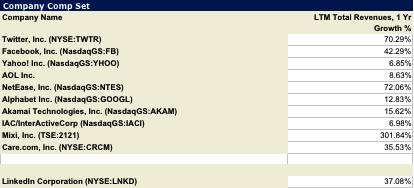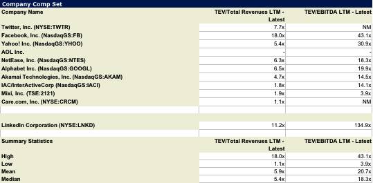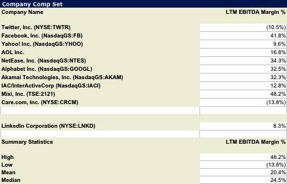 Примечание: мы использовали OIBDA, а не EBITDA, потому что эти данные были готовы для LinkedIn Corp и ее конкурентов.