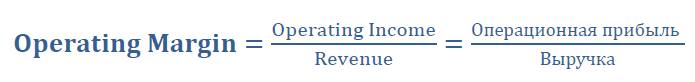 Operating Margin (маржа операционной прибыли) – коэффициент, показывающий, сколько процентов от выручки компании остается в операционной прибыли. В свою очередь, операционная прибыль (Operating Income) – это «сухой остаток» операционной деятельности компании (т. е. той деятельности, ради которой она существует).
