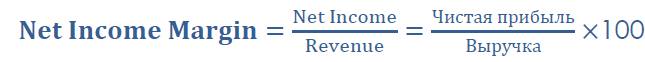 Net Profit Margin (маржа чистой прибыли) – коэффициент, показывающий, сколько процентов от выручки компании приходится на чистую прибыль. В свою очередь, чистая прибыль (Net Income) – это «сухой остаток» операционной и неоперационной деятельности компании. В учебниках по экономике часто пишут, что чистая прибыль равна разности выручки и всех издержек компании. И хотя это не совсем корректное определение, вы можете рассматривать чистую прибыль как «остаточный» финансовый результат.