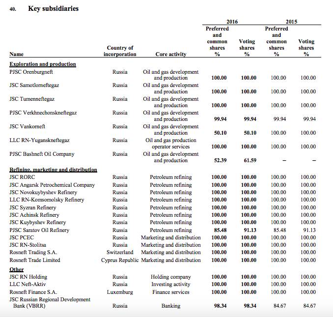 Как видно из таблицы выше, Роснефть не является монолитной организацией, а наоборот, состоит из множества дочерних предприятий, во многих из которых она владеет 100% акций (кстати, лишь немногие из этих компаний являются ООО, если присмотреться к аббревиатурам). С другой стороны, мы также видим несколько примеров, где Роснефть владеет большинством акций в дочерних предприятиях, но не 100%. Возникает вопрос: «Кому принадлежат оставшиеся акции?».