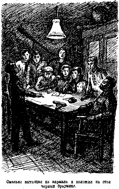И с этими словами Омелько вытащил из кармана и положил на стол перед ошеломленными слушателями черный браунинг.