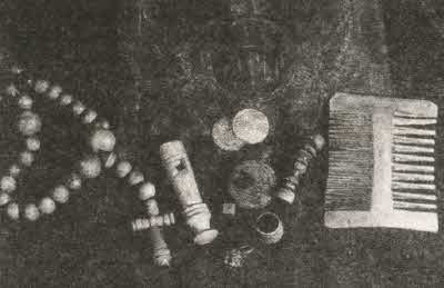 Ему же принадлежит и находка двух цилиндрических печатей, оттиск которых ставили на еще сырых глиняных дощечках для письма. Одна печать, сделанная из горного хрусталя и снабженная золотым колпачком, была в ходу у касситов, владевших Вавилонией. Другая – из красного железняка – тематика была изготовлена, согласно заключению специалистов Британского музея, в XVIII веке до н. э. в Месопотамии.