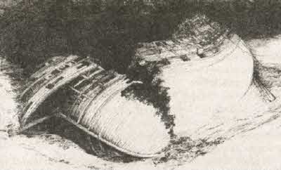 Особый интерес представляли медные слитки с ручками. Они были выполнены в форме воловьей шкуры с «ногой» или «с ручкой» в каждом из четырех углов. Эти «бисквиты» были уже знакомы Джорджу Бассу, почти четверть века занимающемуся подводными раскопками. Тридцать четыре подобных слитка были изучены им в 1960 году при исследовании корабля XII века до н. э., затонувшего у мыса Гелидония.
