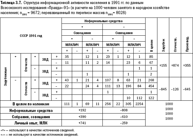 4) неформальные газеты и издания народных фронтов, митинги и собрания неформальных групп, возникающих партий и движений (Неформальные средства в табл. 3.7);