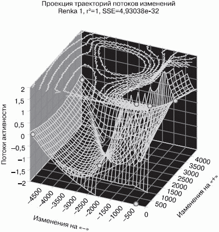 Рис. 2.3. Распределение потоков изменения активности у 768 человек по количественным показателям активности в матрице 297, зафиксированное в группах, отраженных в табл. 2.7 (см. в Приложении 2 протокол № 1: все 768 точек эксперимента легли на эту поверхность)