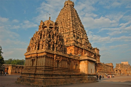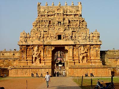 – В отличие от других великих храмов Южной Индии, у этого, самым высоким сооружением является не гопурама – надвратная башня, коих имеется несколько, а вамана – башня главного святилища, которая здесь достигает шестьдесят три метра в высоту. Башня увенчана куполом, высеченным из цельной гранитной глыбы, весом около восьмидесяти тонн. Храм посвящен богу Шиве, а точнее танцующему четырехрукому божеству Шиве Натараджа…