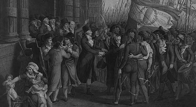 В тот же день на заседание Генерального совета Коммуны явились граждане секции Прав человека и заявили, что «вдохновляемые любовью к свободе и равенству, они никогда ни под каким видом не примут вознаграждения за службу родине, которую они поклялись защищать до последней капли крови». Высоко оценив их порыв, вице-председатель Генерального совета отметил, однако, что на такую самоотверженность способны лишь «ненуждающиеся» люди и «что патриот, которому бедность не позволяет отказываться от денег, может честно принять вознаграждение, обещанное декретами солдатам революционной армии». «Тот, кто оказывает помощь родине, – продолжал он, – несомненно, имеет право получить ее, когда она необходима для его существования, и как самое минимальное за свою кровь он должен получить самую необходимую пищу… хлеб»{281}.