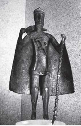 [Закрыть]указывает их появление не ранее VIII в. до н. э. Обратите внимание на эту фигурку: плащ, характерный для кельтиберов, и странный дротик на груди. Примерно такой дротик Диодор Сицилийский описывает у кельтиберов: «Снабженные крючками дротики целиком из железа».[26]26