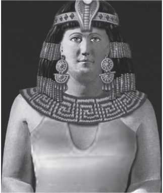 По нашей просьбе фотохудожник «одел» эту статую, и получилась вот такая женщина средних лет: с явными молочными железами, несколько обвислой после кормления детей грудью и характерным для рожавшей женщины животом. На голове мы видим то ли короткую стрижку, то ли шапочку. Но в этом нет ничего удивительного – египтяне и египтянки действительно коротко стригли волосы и носили парики, в данном случае просто изображение выполнено очень натурально.