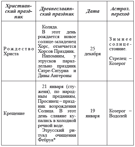 Связь христианства с этрусками опосредованно просматривается и по совпадению древнеславянских праздников с христианскими. Славяне же, по нашему мнению, имели непосредственное отношение к этрускам.