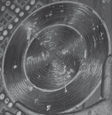 На дисках фресок хорошо видны концентрические круги, и, что интересно, они, как и на фото интерференционной фигуры, выделены художником и черный крест; мы видим и характерный внутренний круг.