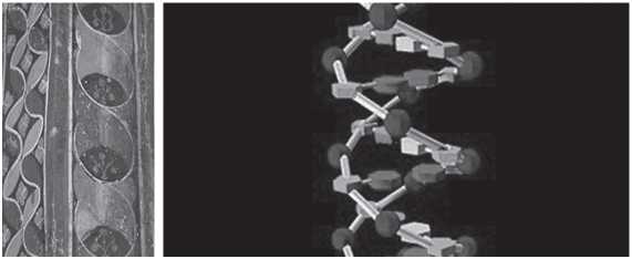 Человек, примитивен ли он или высокоразвит, для обозначения явлений или при создании чего-то, будь то сооружения или самолеты, всегда использует природные прототипы. Какой же прототип использован в данном случае? Спиралей в природе немного, и первое, что приходит на ум, это улитка, на домике которой изображена спираль. Верно, так обычно и трактуют символику древних. Ну, а если мы предполагаем все же не примитивный уровень развития древних людей, какие прототипы они могли использовать? На данный момент в природе самыми известными являются две спирали: кварца, который растет по спирали и проекция его практически идентична такой обычной спирали улитки, и ДНК, где переплетаются две спирали. Кстати, подобные изображения переплетенных спиралей встречаются во многих храмах.[217]217