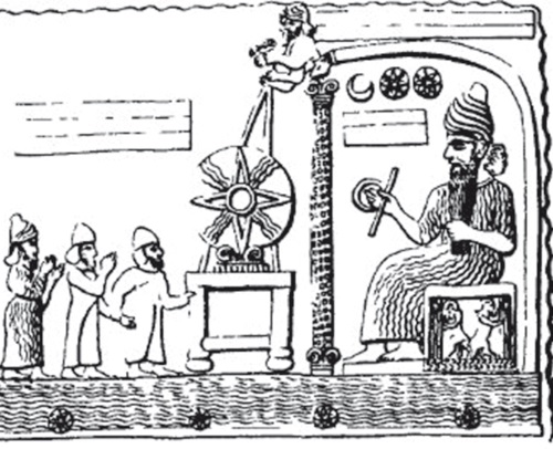 На многих изображениях вплоть до Средневековья можно увидеть оптические приборы и схемы. Так, изображения направленных на некий объект или человека лучей можно найти множество, начиная с Древнего Египта и Шумера. На вавилонском барельефе IX в. до н. э. мы видим, как Бог направляет лучи на диск, сходный опять же с интерференционной картиной кварца, а на древнеегипетском рисунке из Дендер лучи направлены на символическую голову.