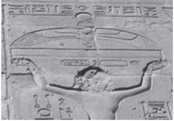 При желании на древних изображениях можно найти и параметры указанного устройства, как, например, на барельефе в Рамессеуме, где человек показательно под крылатой схемой держит что-то вроде линейки.