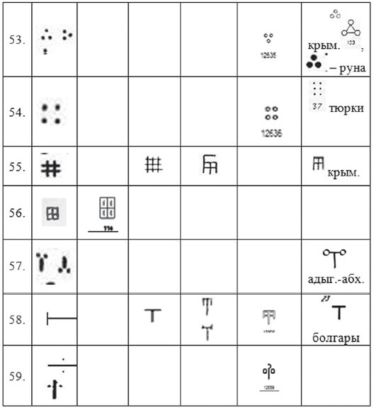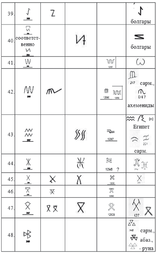 Сравнение знаков рунического письма с древними письменностями и знаками тамга