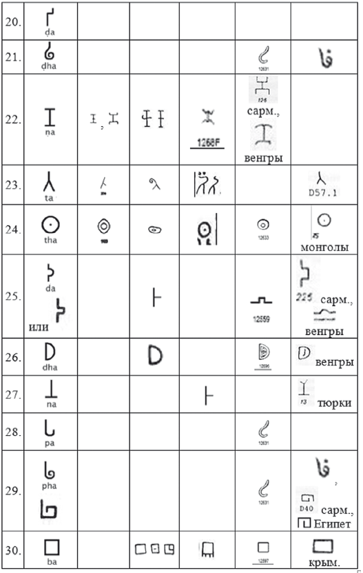 Сравнение знаков письма брахми с протоиндийской, критской, хеттской письменностью, знаками культуры Винча и тамга