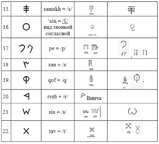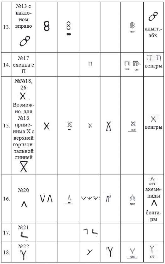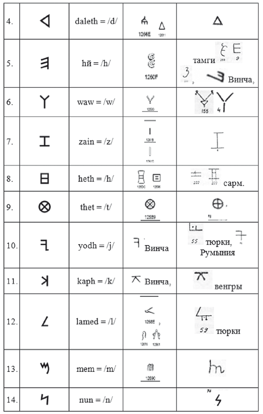 Сравнение знаков финикийского алфавита с хеттским, знаками тамга