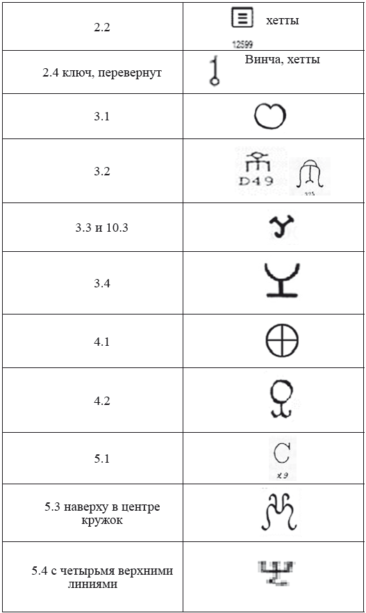 Сравнение письменных знаков культуры Винча с критскими и хеттскими иероглифами и знаками тамга