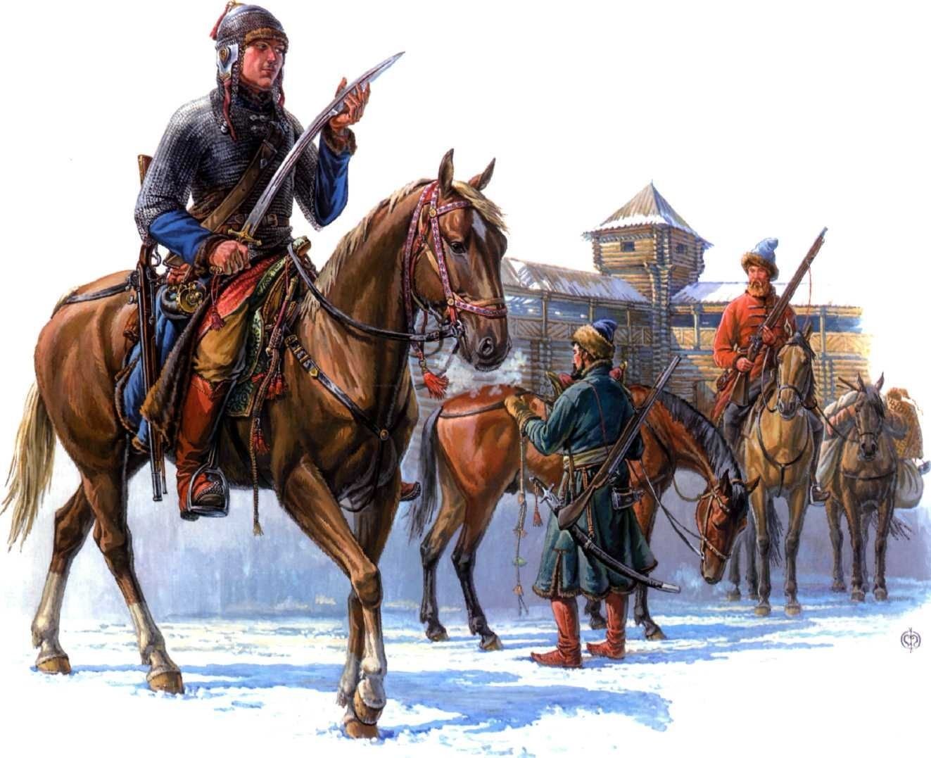Единственным вариантом развития для Руси является быстрый территориальный рост. Путь на восток, на север, здесь добыча пушнины – единственной нашей валюты. И путь на юг, где идет отчаянное освоение Дикого поля, его черноземов – новые и новые засечные черты, оборонительные линии, крепости; Приговор о станичной и сторожевой службе 1571 года создает пограничную службу с глубиной действия до 400 верст, с далеко выставленными в степь постами-сторóжами и патрулями-станицами, покрывавшими сотни верст,«с коня не сседая». Служилые люди становятся первым населением русского фронтира; они и воины, и пограничники, и крестьяне, и торговцы, и ремесленники – всё в одном флаконе. Освоение Дикого поля дает результат, неурожай и голод уже не могут охватить всю территорию Русского царства – к концу 17 в. освоенная степь уже дает миллион пудов зерна в закрома родины и там проживает 1,8 млн. чел.
