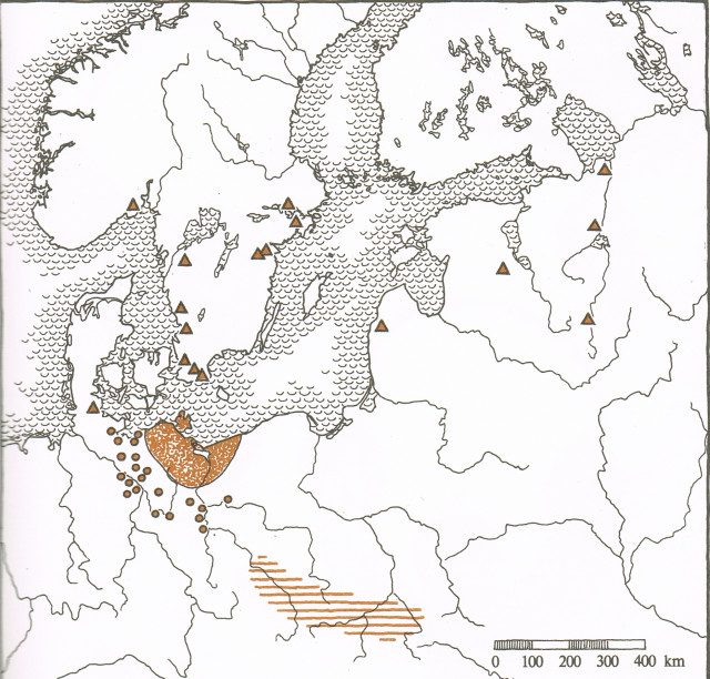Карта распространения балтийско-славянской керамики типов "фельдберг" и "фрезендорф" в VII-IX вв. показывает и ее малую родину на нынешней территории Мекленбурга-Передней Померании, и её обнаружения при археологических раскопках, как на Русской равнине, вплоть до Верхней Волги и Гнездова на Днепре, так и в Скандинавии. Но сколько бы не было найдено славянской керамики в раскопках – то есть, самой что ни на есть бытовой утвари – достаточно одного украшения в виде «молоточка Тора» и место это будет объявлено «скандинавским поселением». Хотя и те самые «молоточки» могли попасть на Русь как товар купцов – балтийских славян.